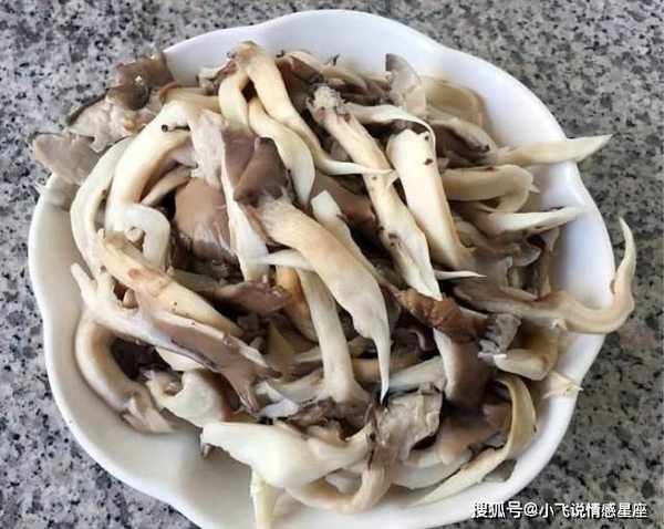 第一步烹调:平菇去根,去黑部分,用手把平菇撕成小块,用盐水洗净平菇,然后沥干水分(这一步很关键)。