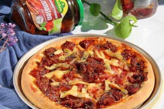 披萨的馅料千变万化,这道是腌番茄蛤蜊披萨,鲜活的蛤蜊用沸水烫至开口后取出蛤蜊肉,经过烘烤之后,鲜嫩的蛤蜊肉会变的肉质有嚼劲,喜欢吃蛤蜊的可以多加一点,我这个有点少了。再加上腌番茄的酸甜味,这种复合的味道也就是在吃披萨的时候才能品尝到。喜欢的就收着,详细做法请往下看。