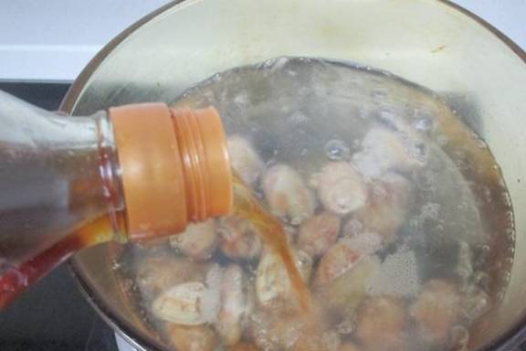 3、锅内注入清水大火烧开后把蛤蜊入锅,烫至微微开口就把黄酒入锅等全部开口后捞起。