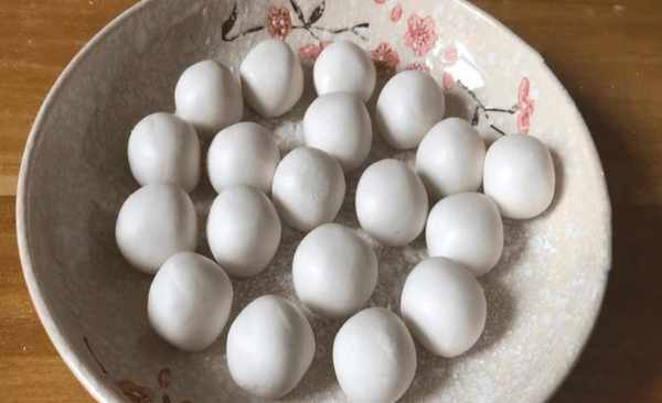 第三步:糯米粉面团切成小块,揉成小汤圆。如果小汤圆吃不完,可以放冰箱冷藏,这样小汤圆就不会粘在一起了。