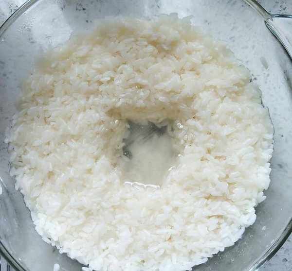 第二步:准备酒酿待用,准备一个大一点的碗,碗里放一些糯米粉,加入适量的水,用筷子搅拌均匀,用手把糯米粉揉成一团,盖上保鲜膜。
