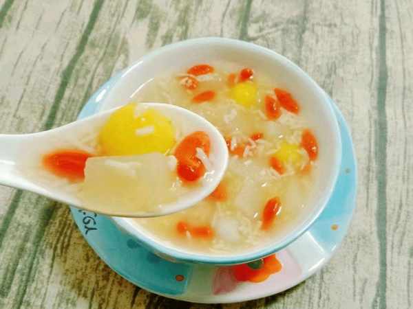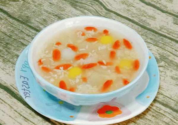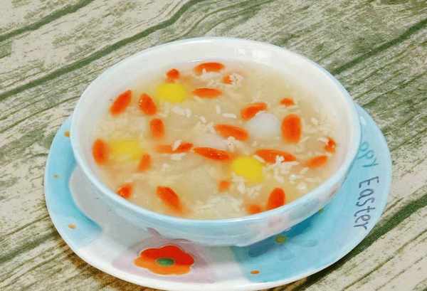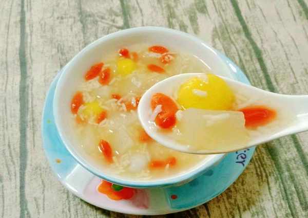 选料:买一个雪梨(或者买秋水梨,梨的皮光滑厚重,皮没有破损,皮不要有皱纹),大约15克冰糖,约。酒酿120克,枸杞子20克左右,糯米粉150克,温水少许,白糖少许,清水少许等。