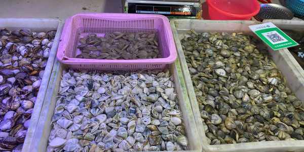海欣荣市场里的贝类海鲜