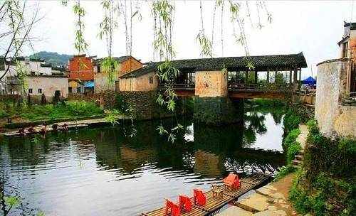 摄者从村口古朴的廊桥开始一路沿溪而行,清溪流水,桃花沿岸盛放,岸边浣妇、群鸭戏水都是很好的拍摄题材,镜头中穿插溪上横跨的木板桥上常有当地村民推着独轮车,挑着担子经过,桃花掩映中,画面意境唯美。除了进入村内拍摄这些精美的古建筑外,从村子附近田野远距离眺望村庄,黑白两色演绎极致的徽派古建筑在花丛中更显淡雅,除了油菜花外,村后田野里有一大片粉红色的小花,郁郁葱葱,牛儿在里面吃着草,是拍摄田园风光的绝佳地点。