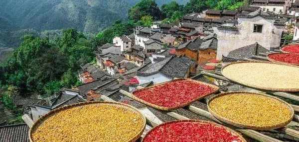 婺源地处江南山区,村落依山而建,村民房屋呈阶梯状扇型分布。自然条件的局限激发了先民的想象和创造力,每年夏秋交替,衬托着徽派古建的粉墙黛瓦,绘就出世界独一无二的“晒秋”农俗景观。