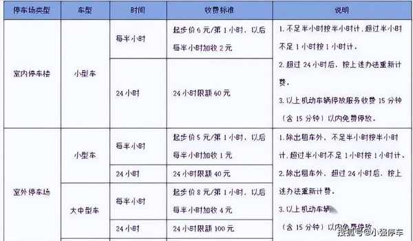 小型车:15分钟(含15分钟)内免费停放,1小时内收费6元,之后每半小时加收2元,不足半小时按半小时计,超过半小时不足1小时按1小时计。24小时最高限额60元。
