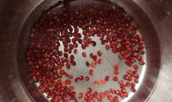 1:首先,将红豆全部洗净,红豆浸泡一夜,让红豆迅速膨胀,糯米用清水洗净备用。