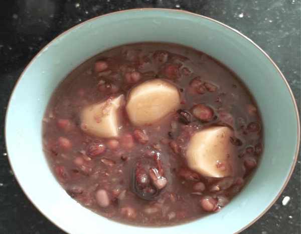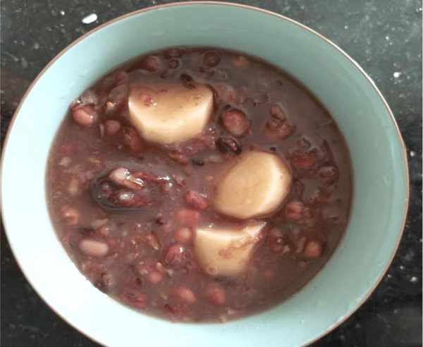 Tips:做粥很简单。最重要的是选择合适的食材。红豆必须预先浸泡。加入果酱煮,先大火,再小火,最后加入红糖慢煮,中间要搅拌,这样粥才不会粘锅糊糊。