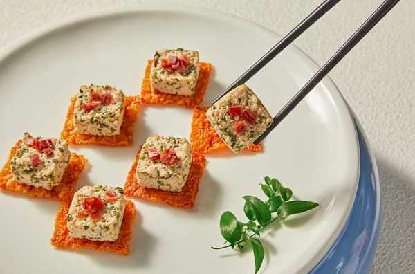 同样是享誉沪上的百年老字号上海德兴馆也拿香椿做起了新文章:香椿搭配老豆腐和火腿,不仅摆盘好看口味也很独树一帜。据上海德兴馆品牌总厨、复兴荟店厨师长梅林介绍,这道“金腿香椿拌豆腐”制作起来要比一般的凉菜更费功夫:首先香椿芽要焯水后切成细末,再与碾碎的老豆腐充分拌匀,随后压制成大小一致的方块状,置于炸好的金黄豆衣“底座”上,最后再洒上少许火腿丁增色。上桌后,这一盘黄、白、红三色相间的创意新品让不少食客纷纷举起了手机拍照,“看起来色香味俱全!”