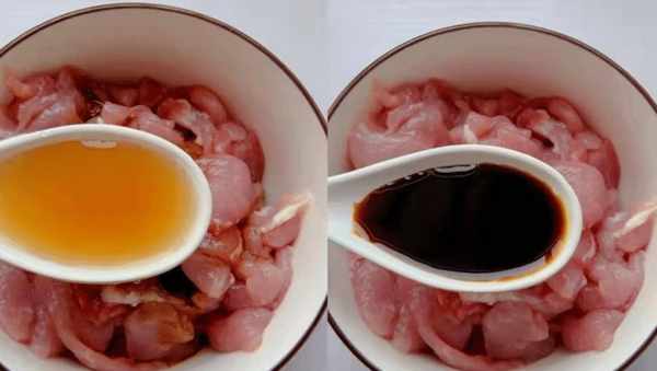 第三步:加入少许料酒去腥。做原味酱油或生抽,加点生粉或生粉,加盐和胡椒粉调味,丸子在生粉里滚,这样丸子更容易成型,味道特别鲜嫩。.