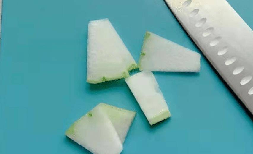 第一步:买来新鲜的猪肉和冬瓜,将冬瓜的皮切开,冬瓜的果肉刮干净,用清水反复清洗,冬瓜切成数块,备用。