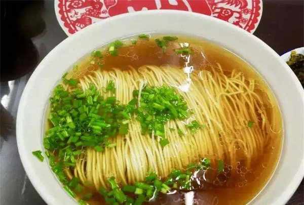 阳春面就是我们常说的清汤面,看起来极其简单,但做起来可不简单。这是江南地区的特色小吃之一,面需要做的爽滑劲道,汤一般用的是清汤,但是里面滴上几滴香油,这个汤就变得不平凡。然后撒上葱花,老远就能闻到香味儿。