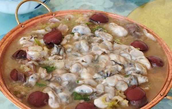 这是我们几个人点的东北炖菜。据说东北炖的味道特别好吃,一定要点一盘。盘子真的很大,里面的食材也很多。虽然看起来很乱,但是吃起来很香,真的是超级下饭。美中不足的是他们的餐具太大气了。本来我们三个坐的是一张普通的四人桌,结果吃了两道菜,立马就坐满了。当时就知道我们胆子小,一脸尴尬,赶紧换包间!