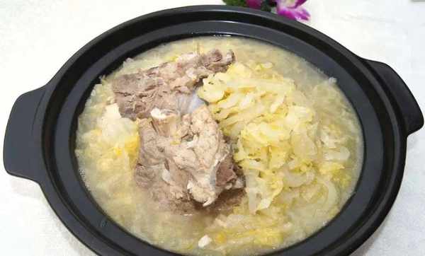 东北特色酸菜、大骨头,混合炖在一起,一想到这道菜,满脑子都是外面鹅毛大雪,屋里面热气腾腾的这道菜。