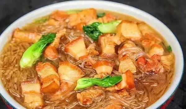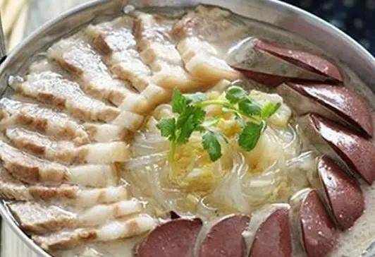 8:杀猪菜在东北是名气很大的一道菜,顾名思义就是杀猪时候做的菜,原本只是东北农村将近年关才会做的一道菜,后面慢慢形成了东北的饮食特色,东北人如果下馆子,就一定会点上一份杀猪菜。杀猪菜就是将新鲜的猪肉、猪血往大锅里一放,煮开后放入切好的酸菜,再放入血肠炖到熟透,最后调味即可。