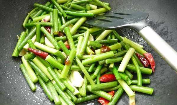 1:准备蒜泥和猪肝,将蒜泥切成头尾,将蒜泥洗净切块待用,将蒜泥用适量的水煮沸,将蒜泥放入锅中焯一下,迅速捞出倒入冷水,这样蒜泥入味更好,颜色很翠绿。