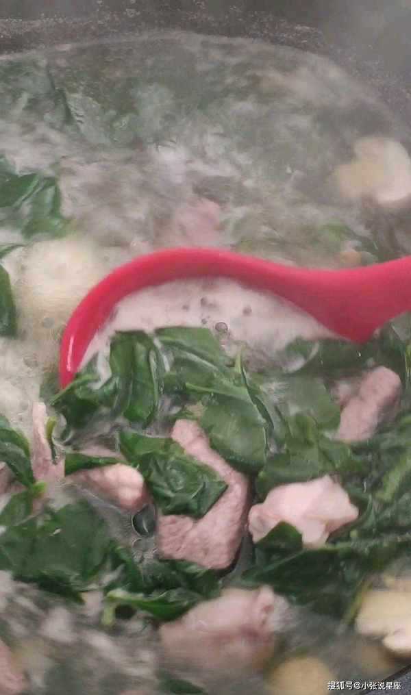 7:最后加入枸杞叶略煮,转中小火慢炖,将猪肝片和猪肉片一一放入锅中,将猪肝片和猪肉片煮至分离。颜色,约7成熟。8:出锅前加入盐,黑酒运动,鸡精少许,鲜味少许,用勺子稍微搅拌一下,淋上香油即可食用。猪排汤就做好了。