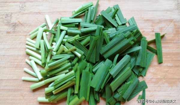 1:买好蔬菜待用,将200克嫩韭菜切去不新鲜的部分,用清水洗净,将韭菜全部切成几段,将韭菜的茎叶分开。