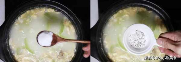 第五步:中火煮15分钟,待佛手瓜呈半透明状,汤色变黄时,加少许盐,加一茶匙鸡汤,加一茶匙白胡椒粉,迅速溶汤搅拌并继续煮一会儿。