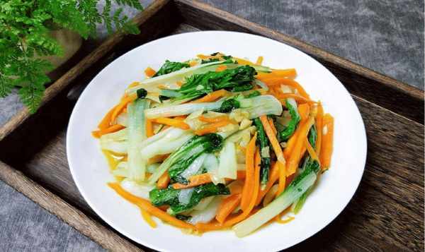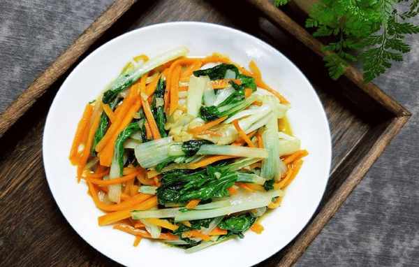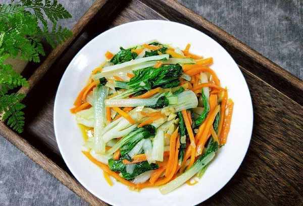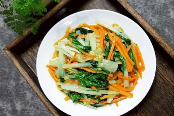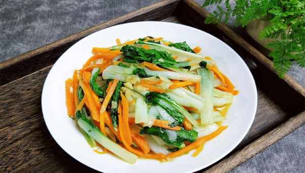 烹饪技巧:白菜炒胡萝卜丝是一道素食炒菜。大白菜的叶子一定要用盐水洗干净。加入蒜片和大白菜翻炒,加入胡萝卜丝炒软,加入蚝油、生抽和盐助调味,搅拌均匀出锅。