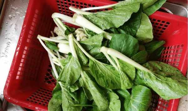 第一步:买两种蔬菜,把白菜上多余的黄叶掰下来,分别用清水洗净,或者用淡盐水泡一下,捏掉节控,沥干水分。