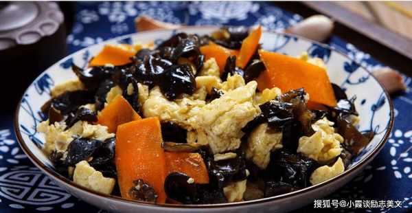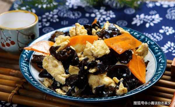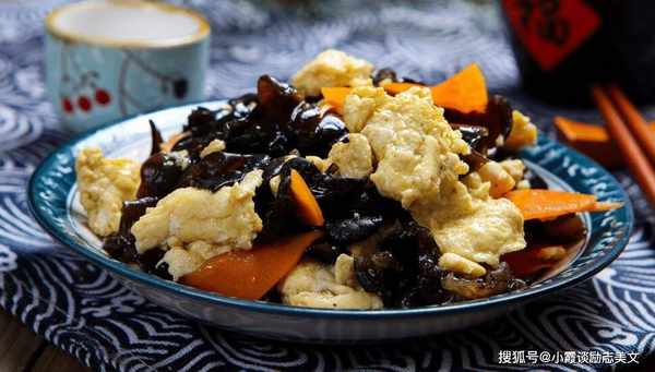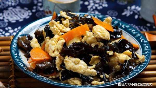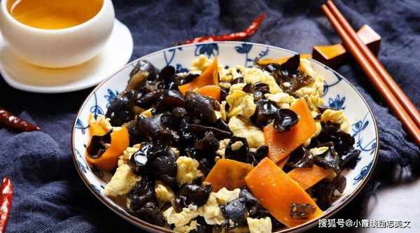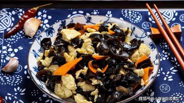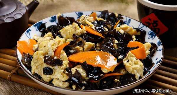 推荐词:蘑菇是一道黑蘑菇菜。黑蘑菇可以凉着吃,也可以炒着吃。它吃起来松脆,营养价值非常高。蘑菇富含人体生长所必需的铁、蛋白质和磷。元素、鸡蛋和胡萝卜是绝配。胡萝卜中含有大量的胡萝卜素,可作用于眼部神经,调节视神经,改善视力。