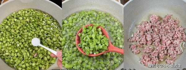 配料:买400克绿豆(绿豆是春季上市的,很脆,绿豆的维生素A和钙含量很高,值得买新鲜软嫩的绿豆,不要四季豆忘记烤了,我们先焯一下再煮),准备200克左右的肉碎(也可以选择猪肉,肉一定要新鲜,可以请屠夫帮忙处理肉碎),一个小米辣少许,蒜少许,姜几片,生抽和蚝油少许,料酒半勺,白糖半勺,老抽一勺,香醋几滴,少许香油和其他调料。