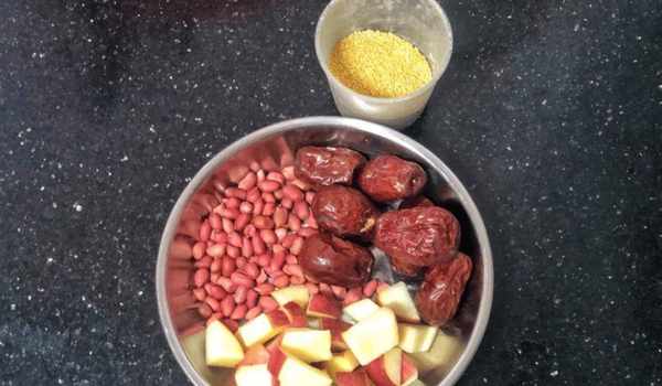 元旦过后,即将迎来小寒节气,是冬天的第五个节气,是冬天最寒冷的时候,冷空气会南下,持续温度降低,是很多南方地区,入冬以来最寒冷的时候。天气变得寒冷了,我们需要许多能量消耗,如果缺少营养,很多维持日常所需,一日三餐,早餐一定要吃饱一些,吃包子和面条,都不如喝这款养生粥——苹果花生小米红枣粥,这粥选用小米,苹果和花生,几种食材都是补益食材,小米更是养胃健脾的主食,用来煮粥非常甘甜,常喝这粥身体更舒服,早食早受益。