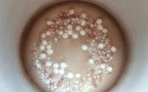第二步:准备一个光滑的容器,碗中加入足够的水,放入薏米6小时以上,让薏米变软,让薏米熟透开花。