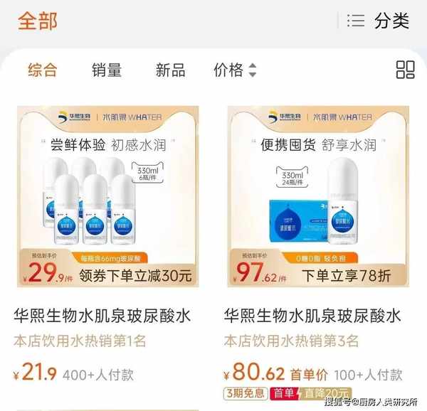 以华熙生物的水肌泉玻尿酸饮用水为例。