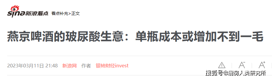 燕京啤酒官方介绍,该款“玻尿酸”啤酒是将功能性原料与酒液特性匹配。
