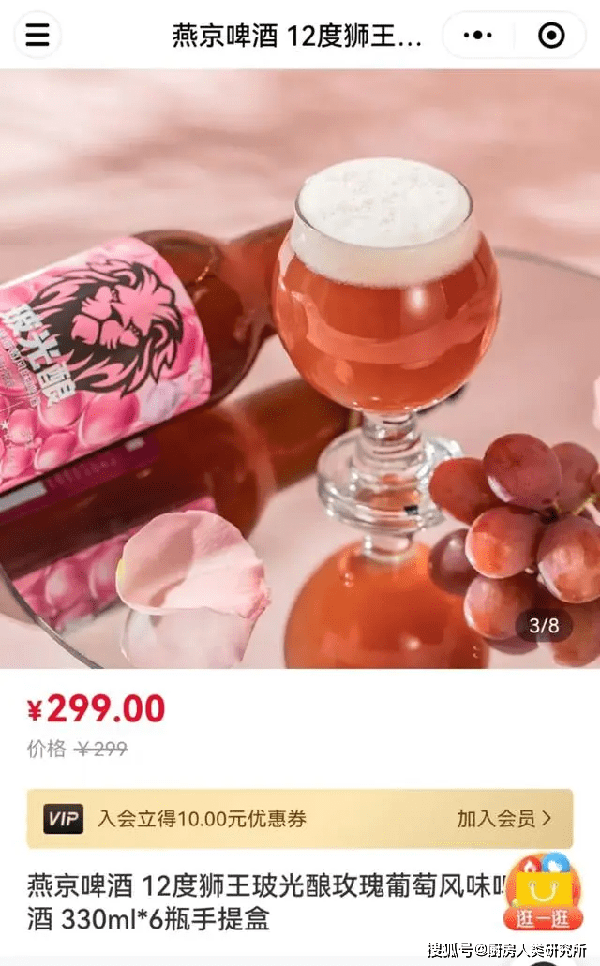 3月8日,该款“玻尿酸”啤酒在300余家“燕京社区酒號”门店开售,售价6瓶299元,也就是一瓶50元左右。