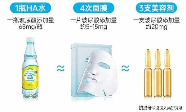 玻尿酸添加量68mg/瓶,店家宣称1瓶水等于4次面膜。