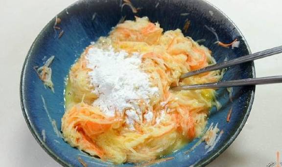 步骤:1.胡萝卜和土豆洗干净,然后去皮,然后用擦丝器擦成细丝,如果家里没有擦丝器的话,可以用刀切成细丝,不过这就需要考验你的刀功了,越细越好吃哦!