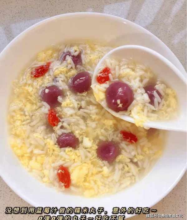 【蓝莓糯米酒蛋花甜汤食谱】
