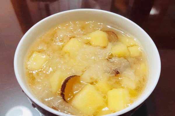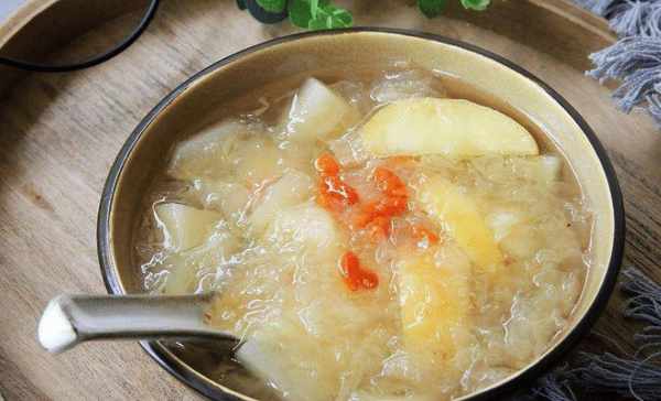 推荐词:银耳是一种黏稠的营养品。比红枣、阿胶的营养效果更好。堪称天然的“驴皮胶”。银耳含有丰富的胶原蛋白和铁质,可以养颜补血。尤其是女性朋友更应多喝此汤。此外,苹果含有丰富的水分、氨基酸和水分,对身体有补脑安神的作用。它们还可以补充皮肤水分,延缓衰老,消除疲劳。人们的睡眠质量得到改善,人们从早食中受益。