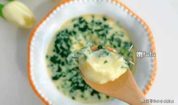小贴士:鸡蛋奶油加菠菜是一道非常美味的佳肴。菠菜含有丰富的钙质。如果直接食用,很容易导致钙元素的流失。应在热水中煮沸,以去除叶子中的草酸,以免形成草酸钙。如果想要蛋液特别Q弹,加温水,加白醋去腥味,盐,胡椒粉,一定要搅拌均匀,表面盖上保鲜膜插几个孔给鸡蛋奶油特别Q弹的味道。蛋羹要先用大火蒸熟,再蒸一会儿,最后淋上香油,起锅。