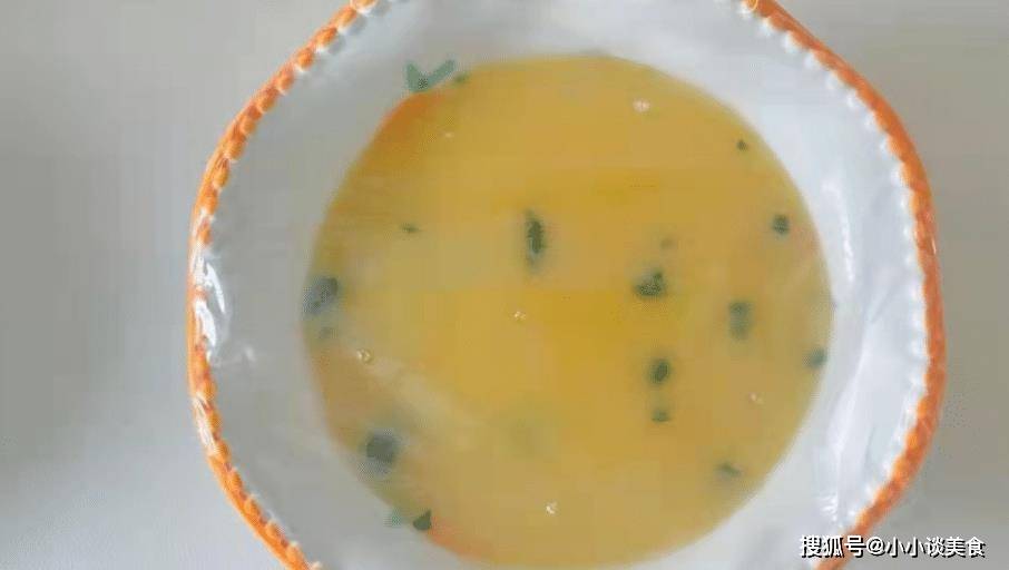 第三步:准备一个空碗,将打碎的鸡蛋打入其中,加入140毫升温水,快速搅拌蛋液,然后用勺子滤去泡沫。