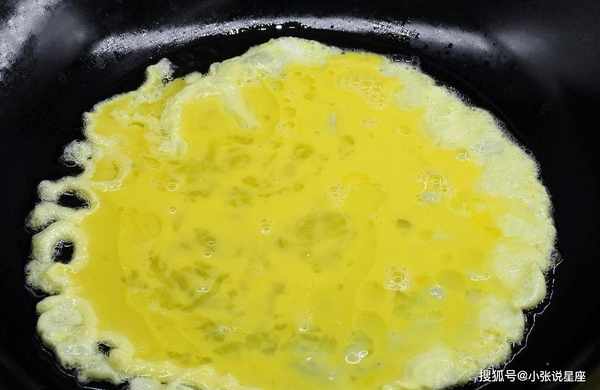 第四步:锅底放少许油,煎入一些蛋液,待蛋液凝固后,用锅铲搅拌均匀,切成小块待用。