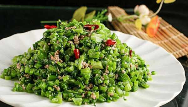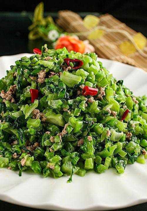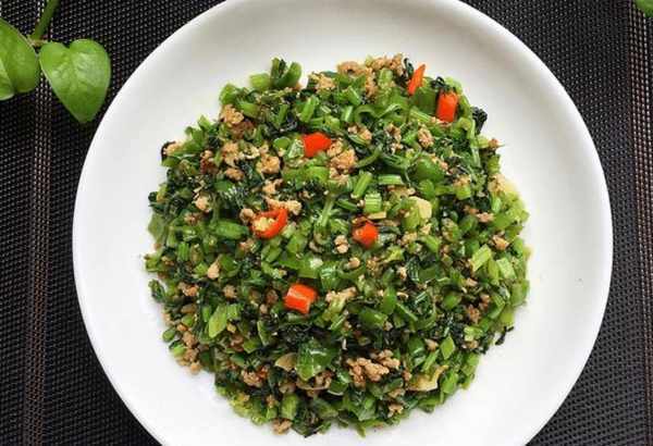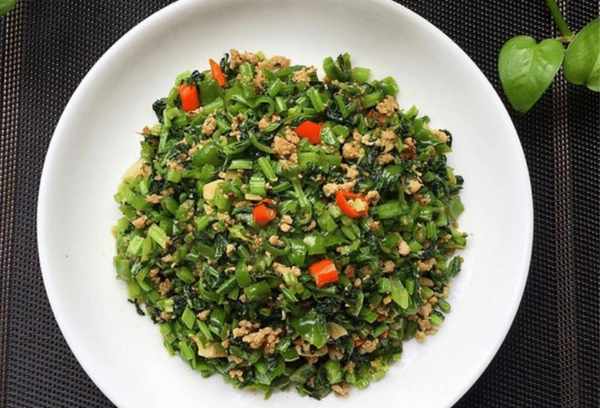 烹饪难度分析:需要掌握雪里莲花和猪肉的选择方法。猪肉碎要剁碎腌制,野菜要炒香。