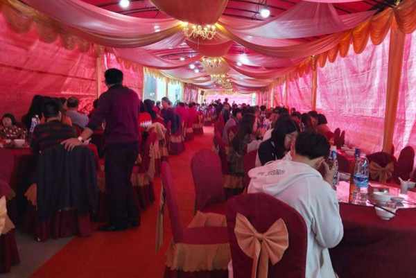 因为朱先生父母身体不便,所以只有他自己前去浙江参加了表姐的婚礼,临行前父母还叮嘱他多随点礼金。到了婚礼的酒店,朱先生先去把礼金交了上去,给了1000元,在当地这个金额不算多也不算少,人能来就好,婚礼就是图个热闹。当天的酒席摆了80多桌,新郎家的亲友很多,就连包间里都安排了来宾,等婚礼结束时,酒席也就开始了,下面就来看看都有哪些美食。