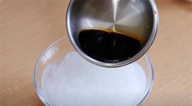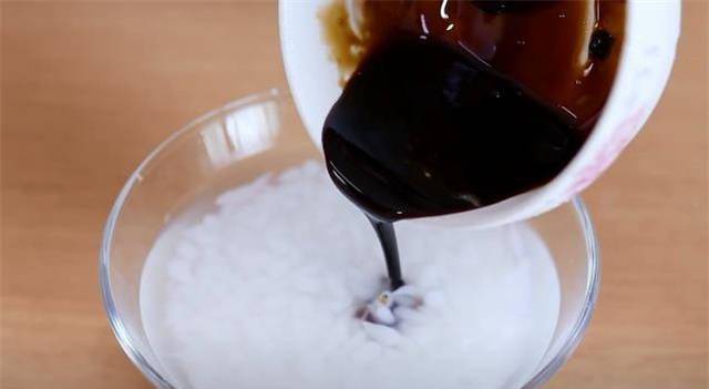 6.我们现在做另一种口味,这是已经冷却的棕色糖浆,马上沥干。