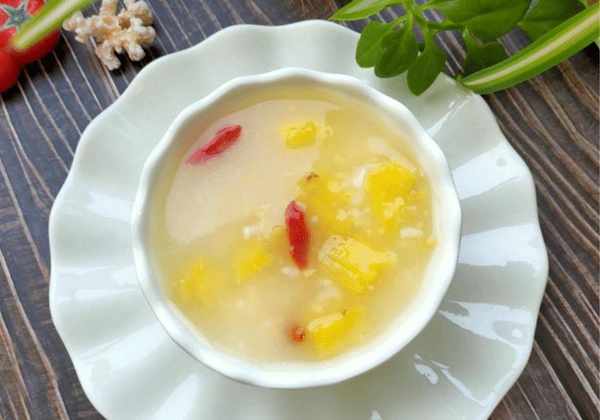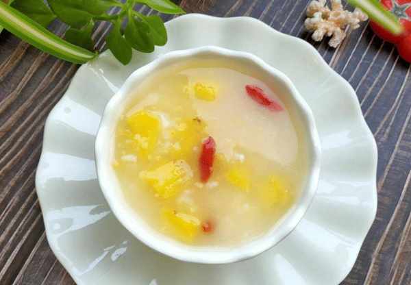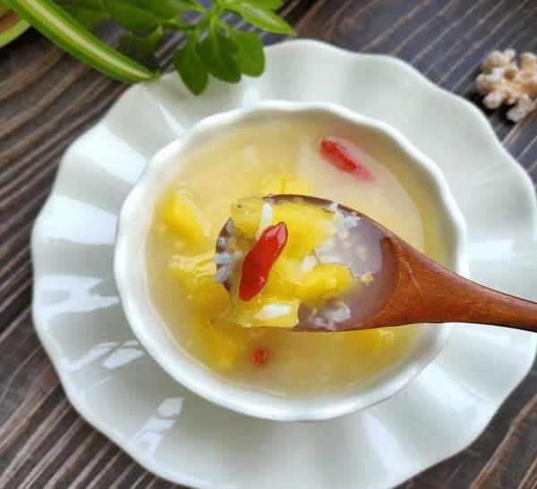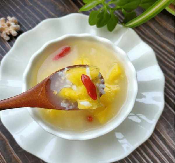 推荐词:菠萝糯米枸杞粥是一道很有营养的粥。菠萝富含果糖和维生素A,并且水分和矿物质含量高。将其与大米一起煮粥。食物煮在粥里,可以暖胃。养胃之余,还能为皮肤补充水分,抵抗皮肤老化。菠萝含有一种微量元素,煮熟后有止咳作用。熬菠萝粥可以止咳润肺,抵御感冒和流感,让你在春天少生病。