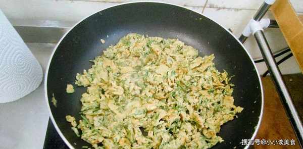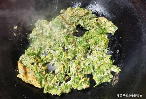 第五步:再煎香椿蛋,加少许盐,胡椒粉,最后淋上香油。这道金黄翠绿、色泽诱人、美味可口的香椿炒鸡蛋就做好了。它既有营养又有满足感。美味的特别晚餐。