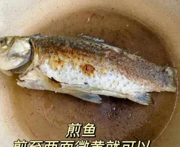 第四步:不粘锅底部加入食用油,烧热至60%,中火下锅煎鲫鱼,让鲫鱼煎至金黄色,翻面煎至皮肤脱落。