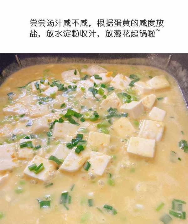 烹饪技巧:选择豆腐和咸蛋黄要有技巧。豆腐必须先焯水,8分钟后煮熟。