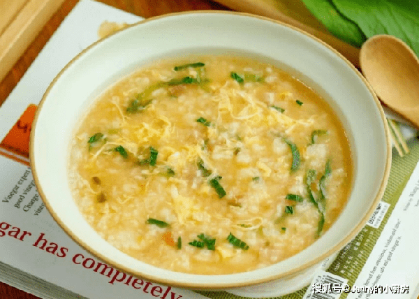 最后淋入蛋液形成蛋花,搅拌均匀后就可以盛出了。