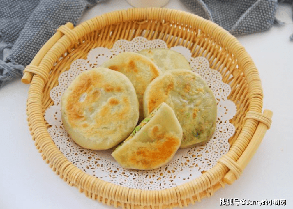 平底锅加油,放入小饼,开小火烙到两面金黄,就可以出锅了。