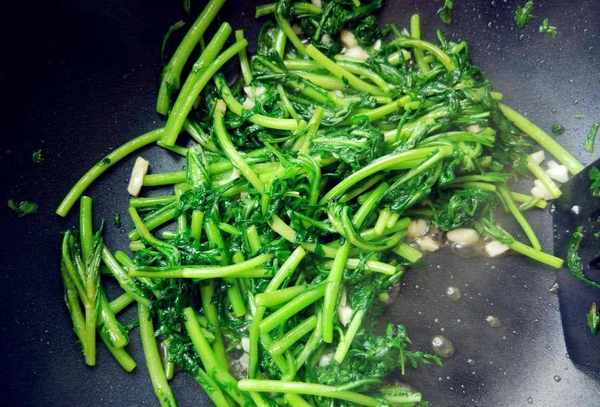 4:加入准备好的菊花,将菊花炒至出水,将两种材料炒至入味后,分别加入蚝油和生抽。