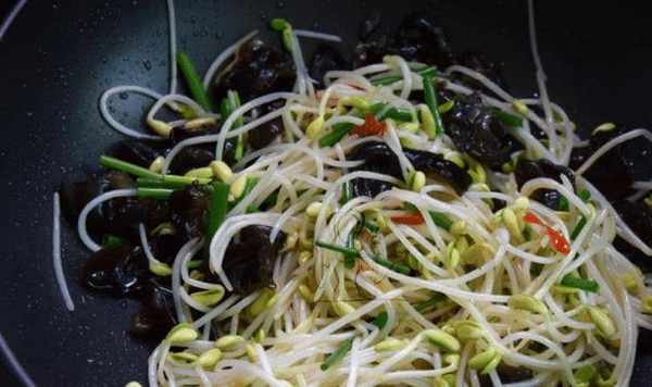 烹饪难点:黄豆芽要洗干净,蘑菇要焯水